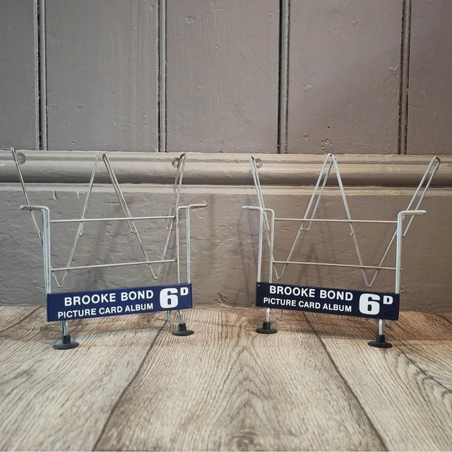A lovely set of Brooke Bond Tea Card Holders, These would of been shop fittings selling Brooke Bond Tea with advertising cards & albums. Great little advertising piece for display or used for holding mail ect. These can be freestanding or screwed to the wall.